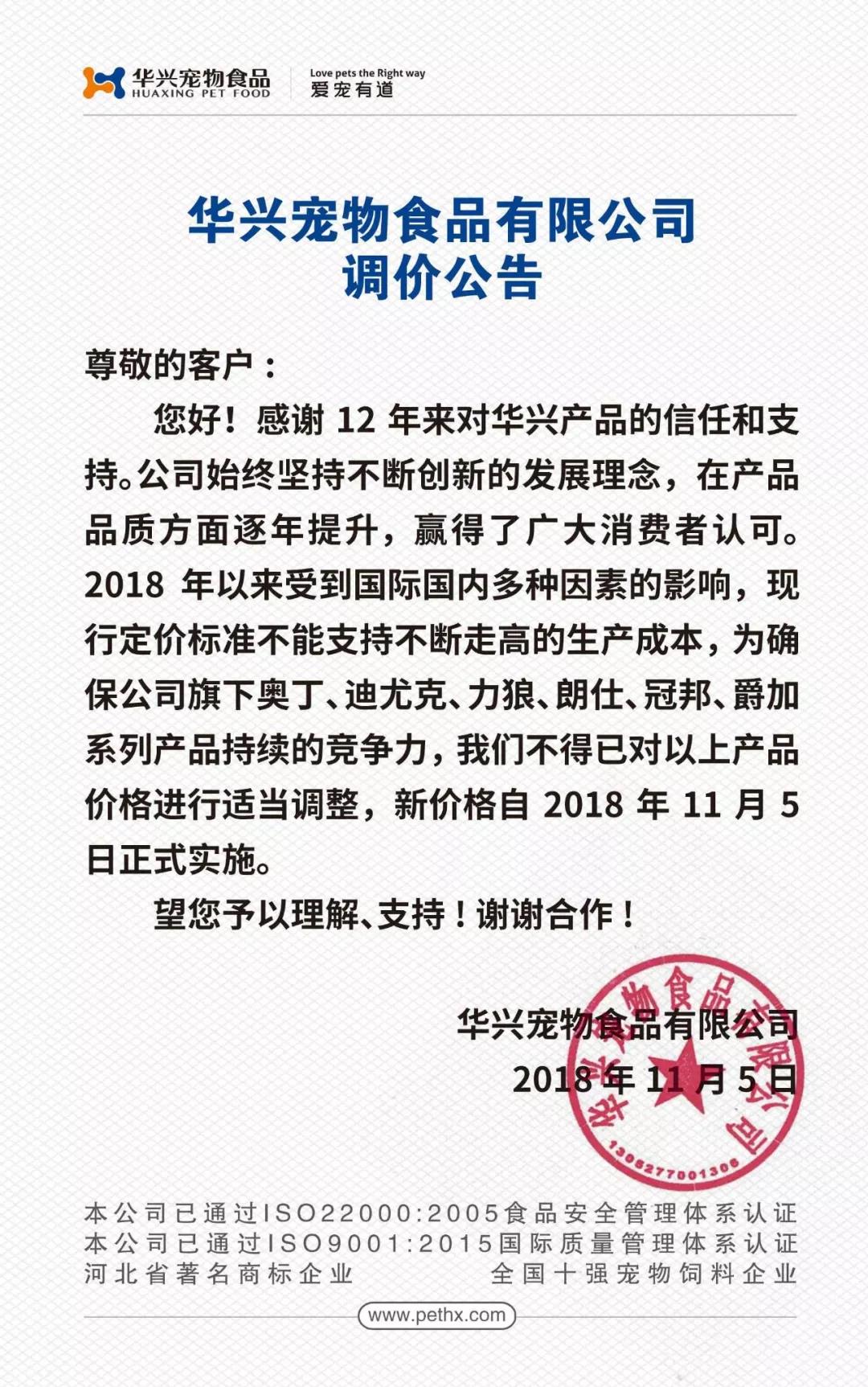 調價公告