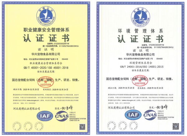 通過職業健康安全管理體系ISO 45001認證;通過環境管理體系ISO 14001認證